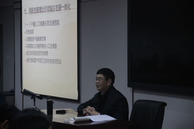 郭教授围绕户籍人口城镇化率加速提高、实施“藏粮于地”、“藏粮于技”战略对十八届五中全会《建议》进行了部分解读。他从户籍制度的历史背景、加速推进户籍制度改革、实施基本公共服务常住人口全覆盖、建立和完善各项支持政策、维护进城落户农民工在农村的各项权益等方面作了全面终统的阐述。郭教授还将新粮食安全战略与传统粮食安全战略进行对比、介绍实施新粮食安全战略的背景及重要举措,为我们解读了“藏粮于地”与“藏粮于技”战略。整个讲座持续了两个小时,郭教授诙谐幽默的语言活跃了全场的氛围,在互动交流时间,郭教授与我们师生在用新发展理念引领城乡发展一体化方面进行了深入的交流,使我们研究生对“三农”问题有了更深的了解。