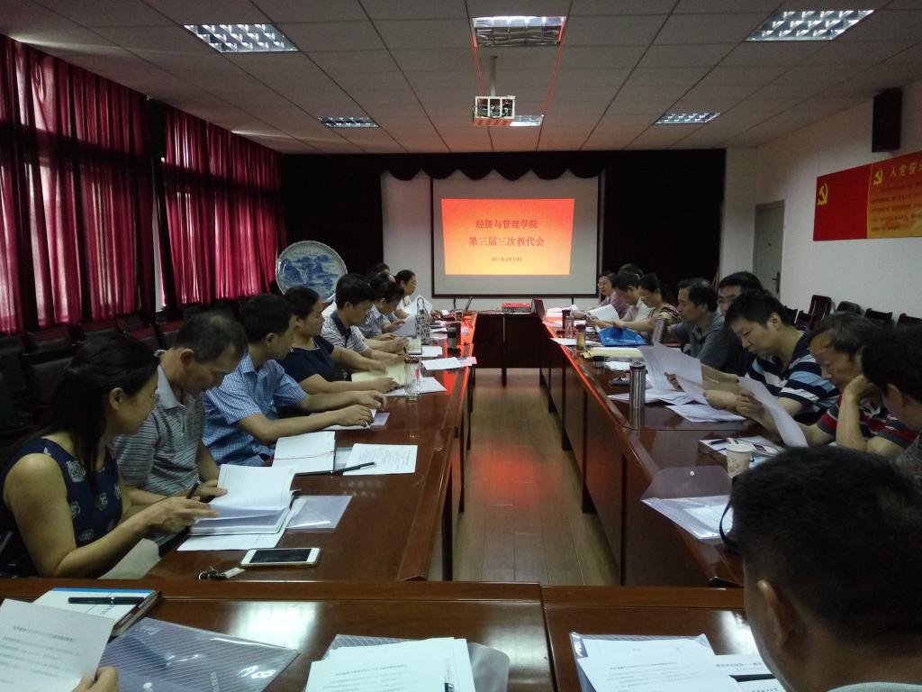 622日上午,经管学院三届三次教代会于文管楼519会议室召开,讨论、审议内涵建设项目立项和撤项管理、科研奖励、内涵建设(教学、科研)评估、硕士生导师组的管理与考核等方面的相关办法。