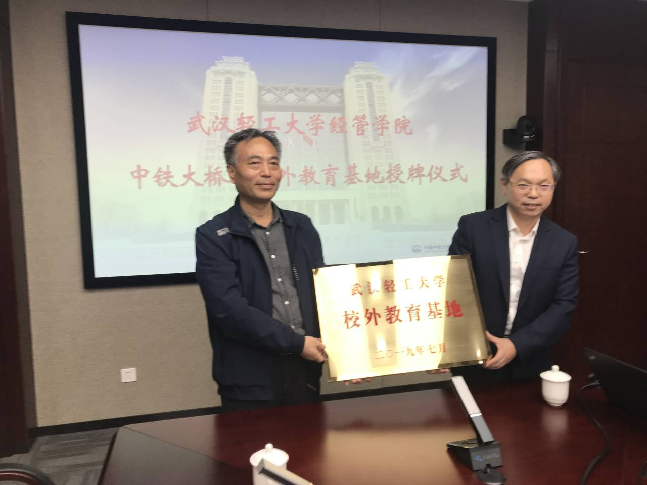 2019年10月12日,我校经济与雷竞技APP官方网站院长雷银生、党委书记肖波明等一行赴中铁大桥局集团有限公司举行研究生校外教育基地牌挂牌仪式,洽谈校企合作事宜。活动得到了中铁大桥局集团有限公司副总经理古继洪、公司财务部副部长戴国华等公司相关负责同志的大力支持和热情接待。