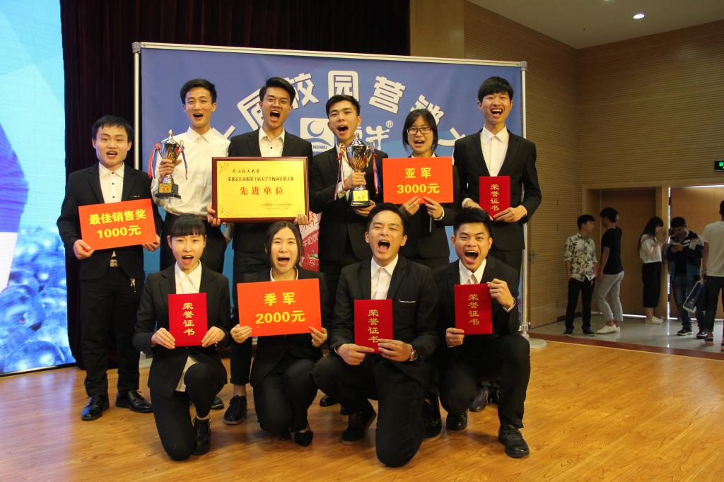 5月21日,由共青团武汉市委、长江商报共同举办的第十届蒙牛真果粒杯大学生校园营销大赛在武汉华夏理工学院完美落幕,我校荣获“先进单位”;经管学院“富一代”队荣获亚军、“果汁分你一半”队荣获季军和最佳销售奖,两支队伍还同时被授予“优秀营销团队”称号;陈汉双老师荣获优秀指导教师称号,严璞同学荣获“优秀组织者”称号。