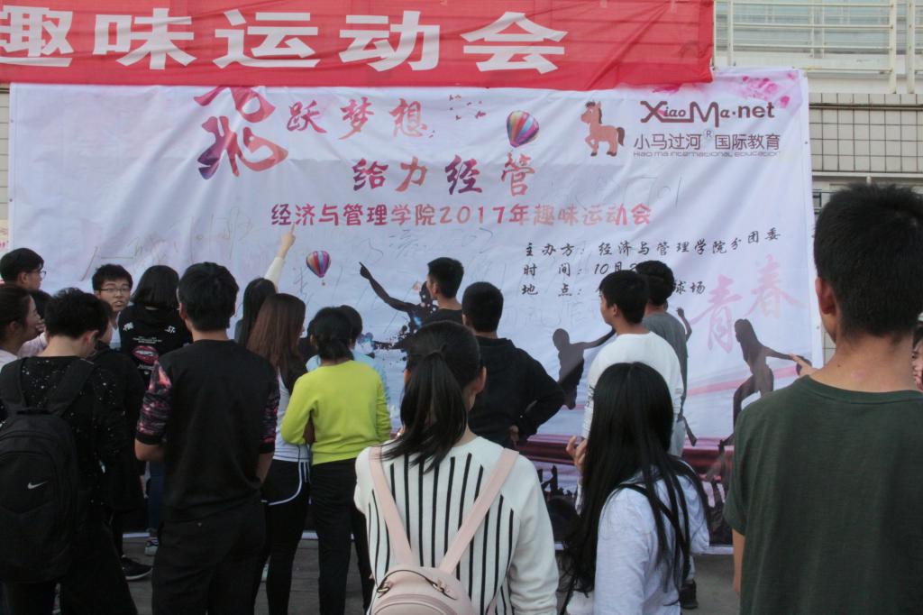 10月28日,经济与雷竞技APP官方网站2017年趣味运动会在金银湖校区田径场举行,校体育部指导教师周蔷,我们分党委书记刘红红、副书记孟三爱,以及各年级辅导员老师和全体大一学生参加了运动会。