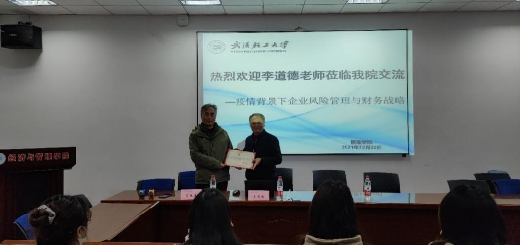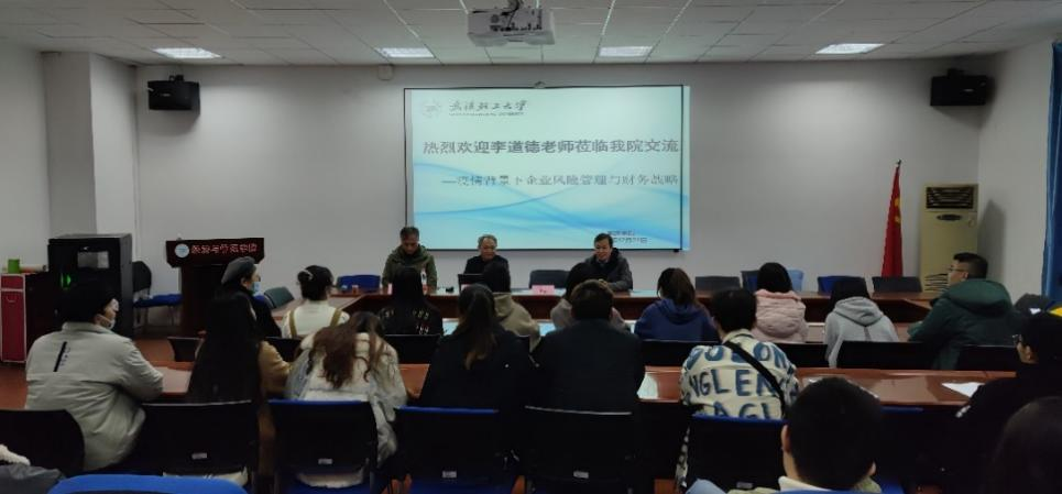 2021年12月22日,雷竞技APP官方网站邀请MPAcc校外研导李道德老师在金银湖校区文管楼421会议室举行了主题为“疫情背景下企业风险管理与财务战略”的交流会,雷竞技APP官方网站师生参与了此次交流。