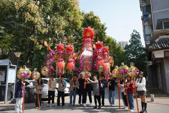 “武汉高龙城非物质文化遗产传承园是国家AAA级旅游景区、爱国主义教育基地。一期于2012年8月16日建成开园,占地2.6万平方米,建有“百工坊”“高龙博物馆”和“汉绣博物馆”,已有高龙、汉绣、木雕船模、雕花剪纸、黄梅挑花等54项国家级、省级、市级非遗项目进驻园区,是集保护、生产、展示、销售、研究、推广、学艺、传承、体验、旅游为一体的非遗生产性保护基地。”陈满祥说。最后他表示,随着时代的发展变化,非遗的传承与开发也需要不断创新。他希望学生们能更多关注和支持高龙城,积极为高龙城的发展建言献策,创新传播高龙文化。