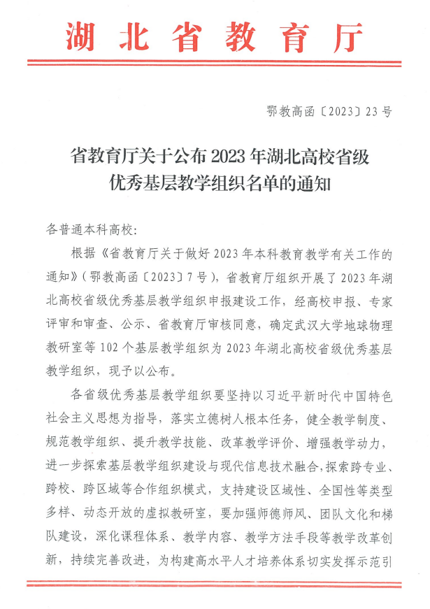 近日,湖北省教育厅发布了《省教育厅关于公布2023年湖北高校省级优秀基层教学组织名单的通知》(鄂教高函﹝2023﹞7号),雷竞技APP官方网站文化产业管理教研室获评省级优秀基层教学组织。