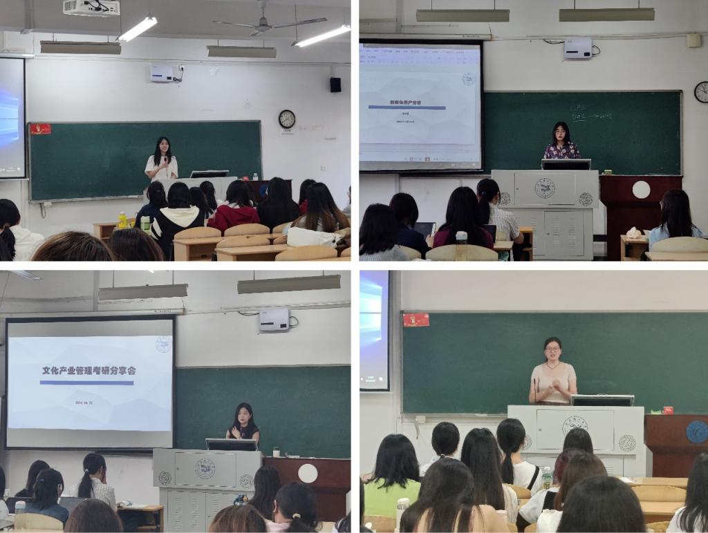 为充分调动文化产业管理专业学生考研积极性,营造浓厚学习氛围,坚定学生考研信心,为广大考研学子提供宝贵的学习经验和备考策略,提高备考效率,从3月至5月,文化产业管理专业利用课间等碎片化时间召开6场“考研经验分享会”。活动邀请了2023届考取本校研究生的优秀学长,以及2024届被华中科技大学、北京交通大学、福州大学、湖北省社科院等院校录取的文化产业管理专业20级优秀学姐为同学们做经验分享,专业2021级全体同学参与,教研室主任郝挺雷组织并主持会议,周学新等专业老师参加。