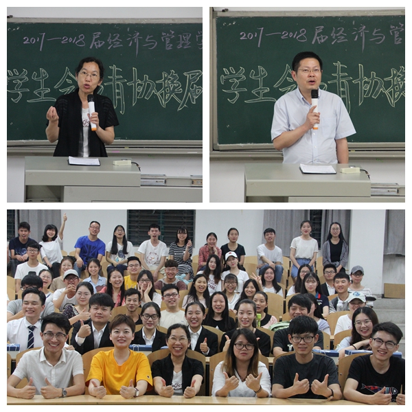 6月13日晚,经管学院在文管楼118举办学生会及青协主席团换届大会。经管院分党委书记刘红红、副书记孟三爱、分团委书记罗莎老师以及经管学生会、青协全体成员参加了会议。