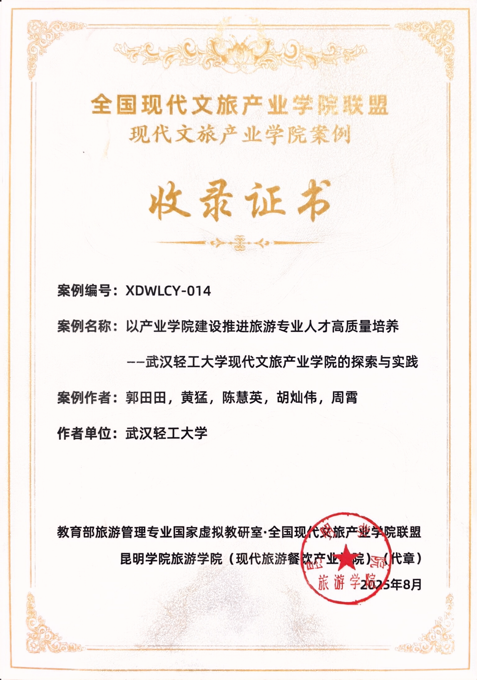 会上,我校现代文旅产业学院院长郭田田作为主讲嘉宾,以《产教融合“双向奔赴”的价值共生与机制创新——以项目式育人构建产业学院新生态》为题,分享了raybet雷竞技下载现代文旅产业学院创建两年来的探索与实践。团队提交的案例《以产业学院建设推进旅游专业人才高质量培养——raybet雷竞技下载现代文旅产业学院的探索与实践》入选联盟优秀案例。